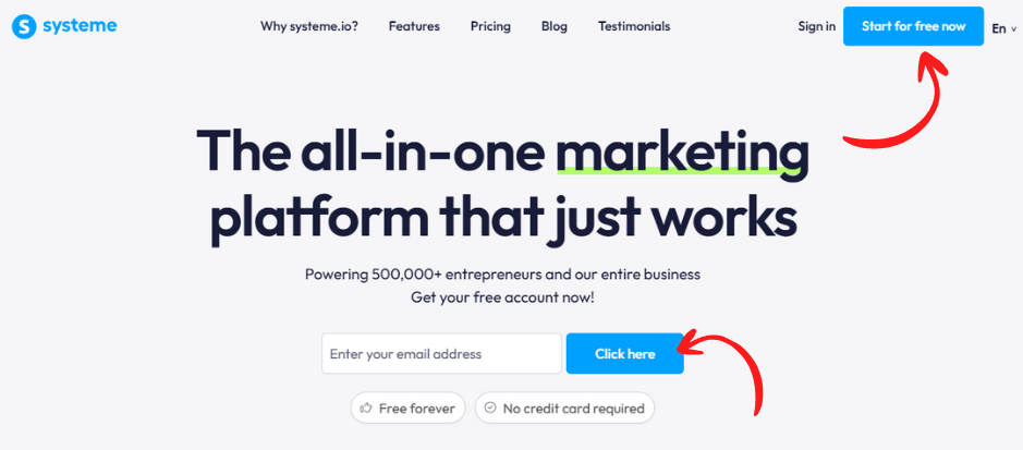 1.1 Visit the Systeme.io Website